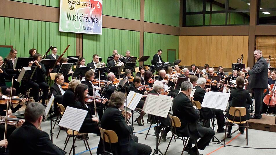 Am Ende dieses Abends warten ganz besondere Blumen auf Dirigent Rolf Otto. Wenn der Solist eines Sinfoniekonzertes am Ende zum Blumenboten für den Dirigenten wird, muss Besonderes passiert sein. Dieser Abend in der Mehrzweckhalle Heubischer Straße in Neustadt jedenfalls ist kein ganz normaler Abend - dieser Abend steht im Zeichen des Abschieds. Dabei belegt der große Publikumsandrang schon lange vor Beginn den hohen Stellenwert, den das traditionsreiche jährliche Sinfoniekonzert der "Gesellschaft der Musikfreunde" im kulturellen Leben der Bayerischen Puppenstadt einnimmt.
