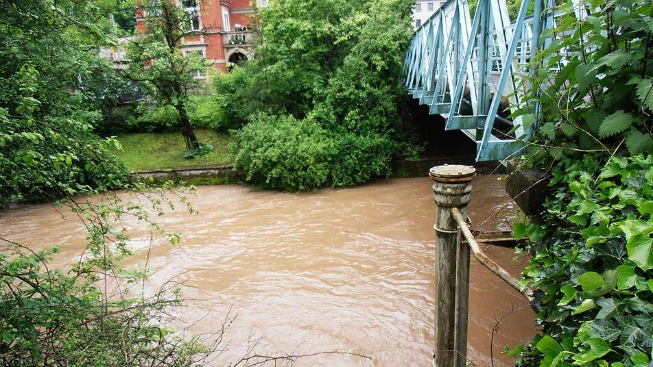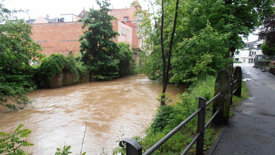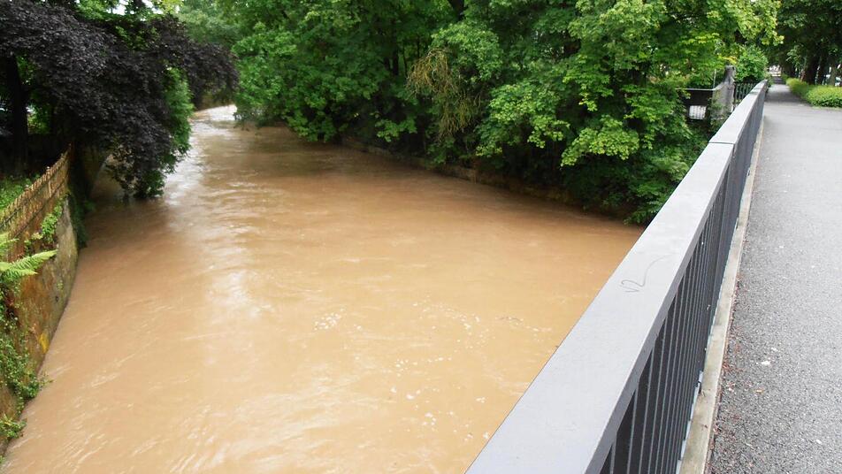 Die Itz führt im Stadtgebiet von Coburg zwar weiterhin Hochwasser, doch die Pegelstände sind von Samstag auf Sonntag sichtbar ein wenig gesunken. Vor allem aber: Über die Ufer ist die Itz selbst am Samstag nicht getreten.
