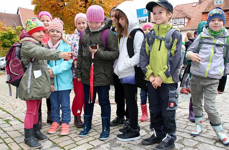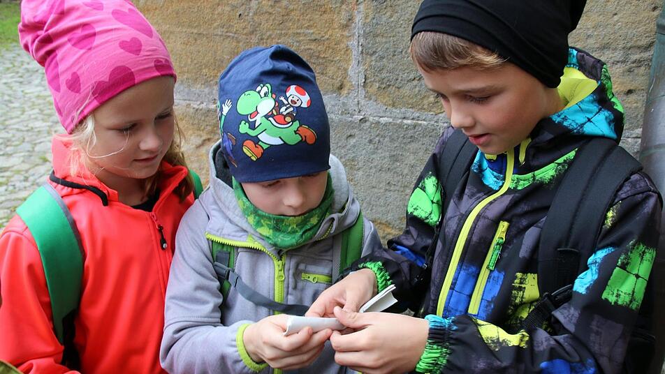 Begleitet von ihren Hort-Erzieherinnen Yvonne Chilian und Kerstin Göllner-Kieslich machen sich die Geocacher auf den Weg zum Ausgangspunkt, dem Marktplatz in Heldburg. Nach einer kurzen Einweisung teilt sich die Gruppe. Eine Gruppe verbleibt, um an Ort und Stelle nach dem ersten Cache zu suchen, einer Dose, in der dieser erste Hinweis versteckt ist. Die zweite Hälfte der Jungen und Mädchen beginnt an einer anderen Station, damit sich nicht zu viele an einem Ort drängeln. "Jetzt müsst Ihr gut schauen", fordert Chilian ihre Schützlinge auf. "Da hinten ist der Schatz!", ruft plötzlich ein Junge. Schnell hat Nick die Dose geöffnet und ihr ein zusammengerolltes Papier entnommen, das an ein Stück Pergament erinnert. Der Achtjährige liest den umfangreichen Text flüssig vor, die anderen lauschen gespannt. Schließlich gilt es am Ende eine Frage zu beantworten, um die Koordinaten des nächsten Ziels zu ermitteln. Wie hieß der Pfarrer aus Westhausen, von dem die Heldburger Bürger die ersten evangelischen Gottesdienste hörten? Nick schaut noch mal im Text nach. Die Anzahl der Buchstaben von Vor- und Zunamen des Gesuchten vervollständigen die Angaben zum nächsten Cachepunkt.