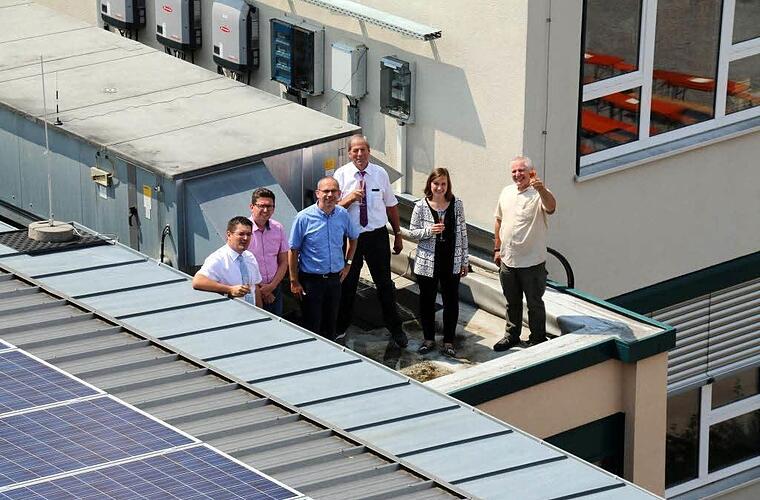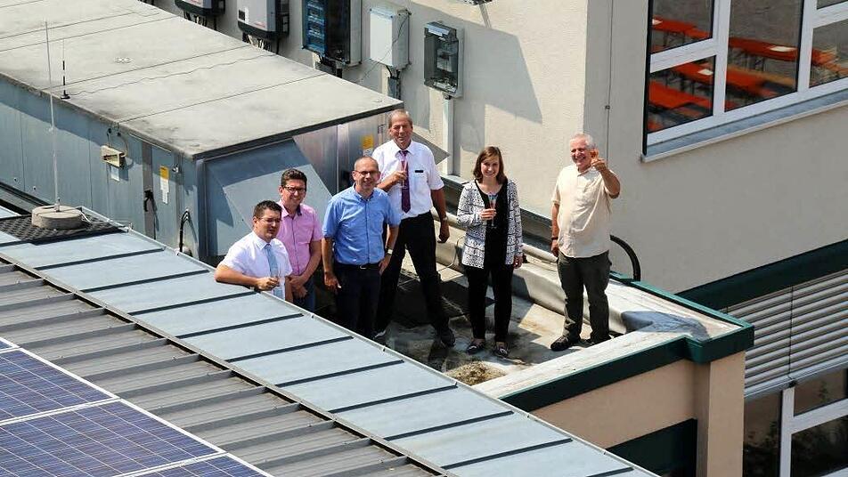 Kurz vor den Sommerferien kann sich das Coburger Gymnasium Ernestinum über eine besondere Bescherung freuen: Am Mittwoch übergab die Bürger-Energiegenossenschaft Coburger Land eine brandneue Photovoltaik-Anlage an Oberbürgermeister Norbert Tessmer (SPD), Baubürgermeisterin Birgit Weber (CSU) sowie an Schulleiter Bernd Jakob. Die 84 KW starke PV-Anlage, die auf dem Dach der Mensa und des angrenzenden Klassentrakts installiert wurde, stellt das erste Beteiligungsprojekt der noch jungen Genossenschaft dar. Umso mehr freuten sich die Vorstände Christian Gunsenheimer und Walter Flohrschütz sowie Wolfgang Weiß als Aufsichtsratsvorsitzender darüber, ihr neuartiges Kooperationsmodell nach Anlaufschwierigkeiten nun endlich in Betrieb nehmen zu können.