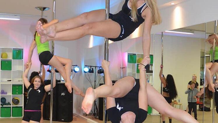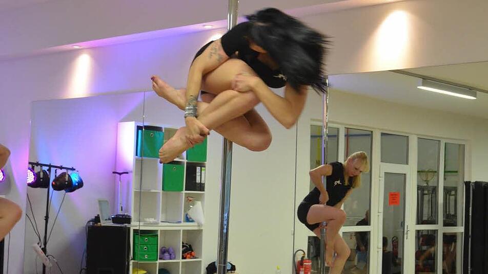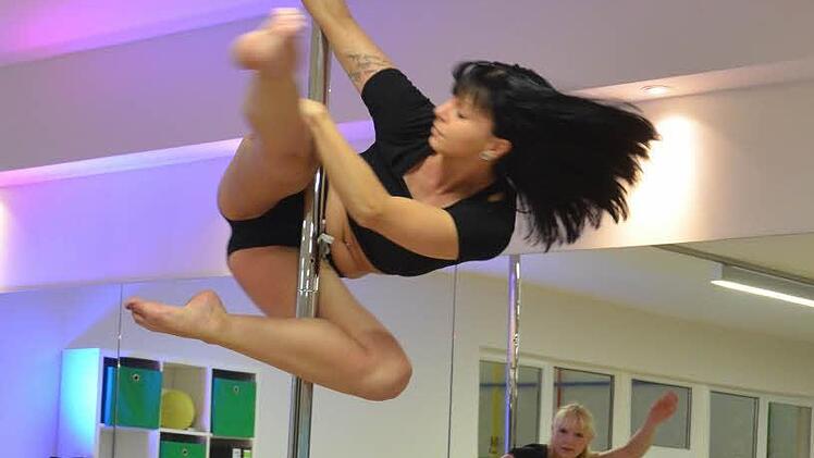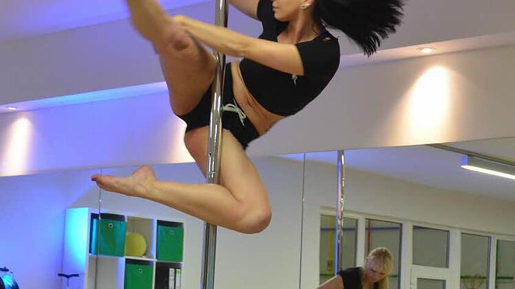 Sophie Geiger geht an die Decke. Nicht, weil sie ärgerlich ist, sondern weil sie es gern tut. Sie ist Kursleiterin für Poledance im Rödentaler "Sportshouse", und beim akrobatischen Tanz an der Stange schwingt sie sich mit zwei, drei eleganten Bewegungen tatsächlich bis hinauf an die Hallendecke. Wie sehr dieser Sport im Trend liegt, zeigt die Zahl der Interessentinnen. Über einen Mangel an Nachfrage kann die Kursleiterin nämlich nicht klagen, seit sie im vergangenen Herbst damit begonnen hat, die Trainingsgruppe "Mystique Pole Art" aufzubauen: "Der Zulauf war gleich am Anfang Wahnsinn, und es kommen immer noch ständig neue Mädels dazu."