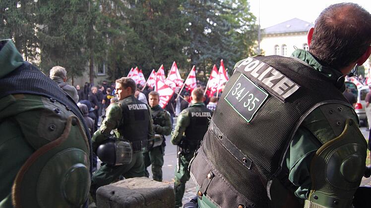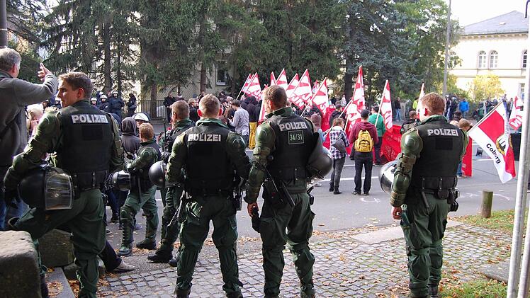 Der Demonstrationszug der jungen Nationaldemokraten sollte sich um 11 Uhr in Coburg in Bewegung setzen. Doch es kam zu einem Zwischenfall: Die Polizei hat bei Teilnehmern der Kundgebung Waffen gefunden.