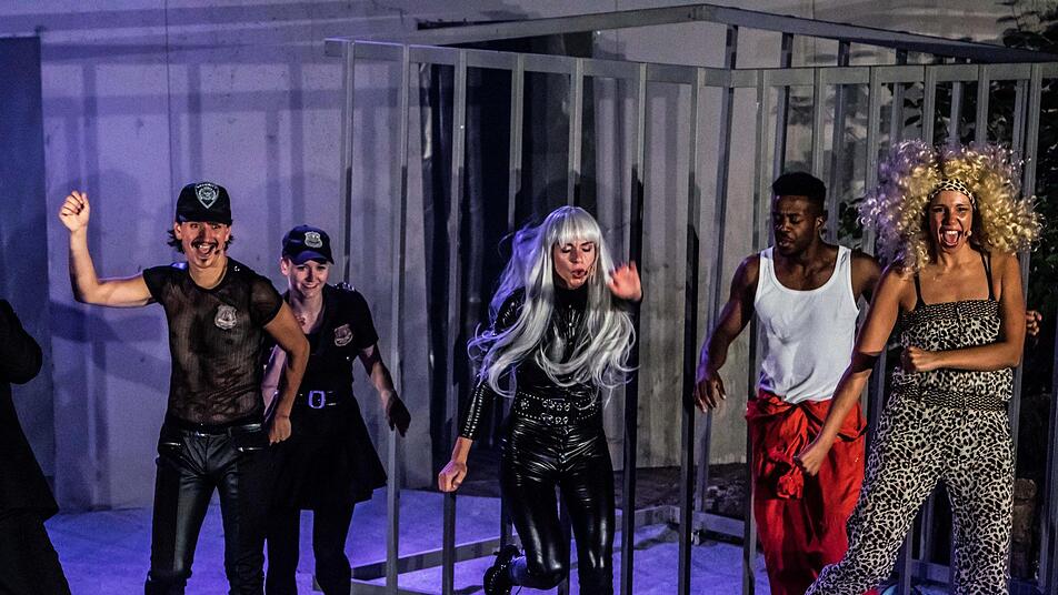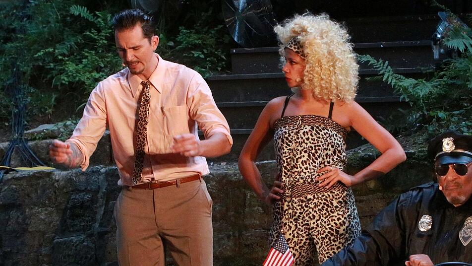 Doch nach der Pause nimmt der Abend spürbar an Fahrt und Intensität auf. Dann entfaltet auch die Musik mit vielen der aus dem Film bestens bekannten Stücke ihr Hit-Potenzial. Die siebenköpfige Band (Leitung: Christoph Gerz), die oben über der Szene im Orchesterpavillon Platz genommen hat, liefert den ebenso lautstarken wie stilsicher musizierten Sound.
