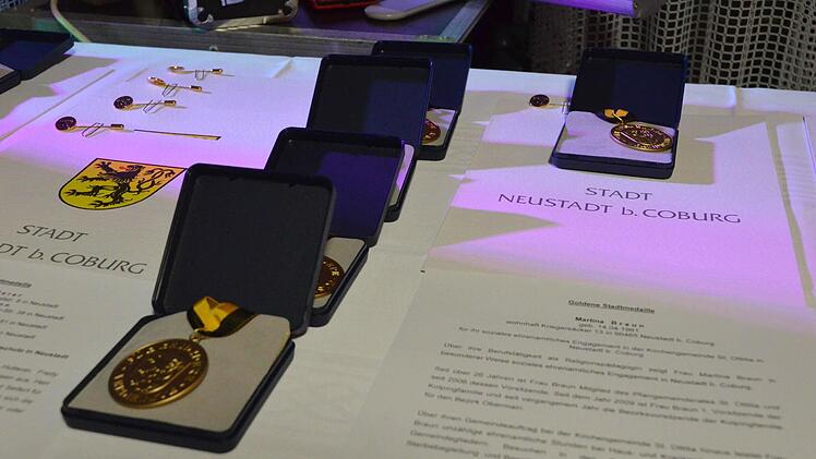 Gleich im Viererpack geht die Goldene Stadtmedaille an verdiente Fischer. Thomas Hutterer, Fredy Hellmann, Jürgen Müller und Gert Seifert erhalten die Auszeichnung für ihre Verdienste um Fischereiwesen und Naturschutz. Bereits seit Anfang der 90er Jahre üben die Vier ihr Ehrenamt. Thomas Hutterer für den Angelclub Neustadt und die Petrijünger Hellmann, Müller und Seifert für die Angelfreunde Meilschnitz. Vom Angelclub Neustadt werden der Rottenbachteich und das Gewässer im Freizeitpark betreut. Die Angelfreunde Meilschnitz kümmern sich um den Paarhosenteich, den Haiderteich und um die Steinach von der Landesgrenze her kommend bis nach Wörlsdorf.