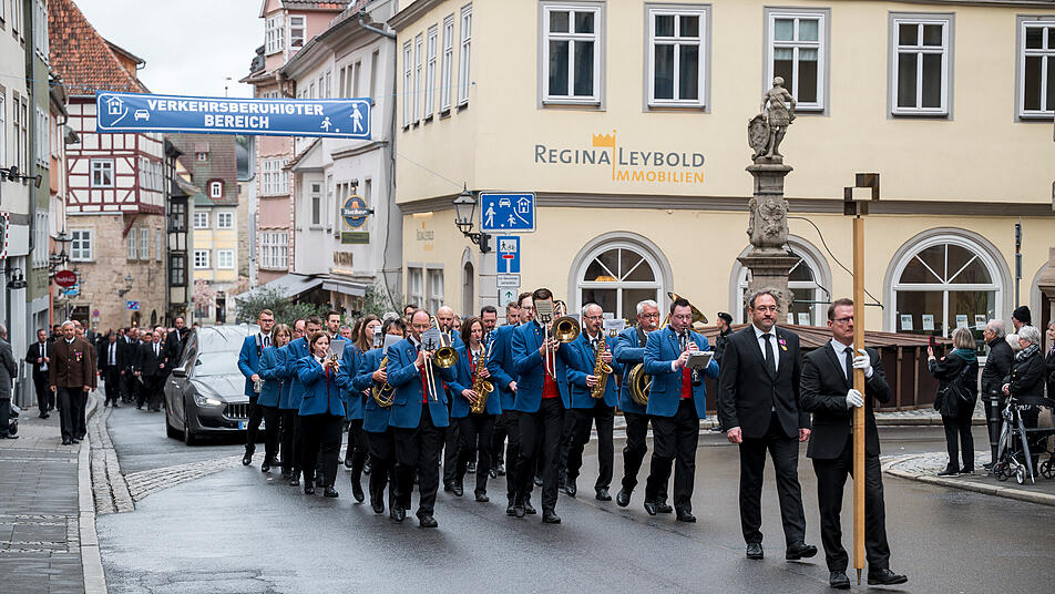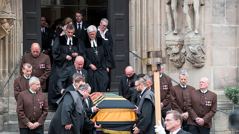Im Anschluss an den Gottesdienst in der Kirche St. Moriz ging es in einem Trauerzug zum Schlossplatz, wo es noch eine kurze Abschiedszeremonie gab - unter anderem mit Böllerschüssen und Musik.