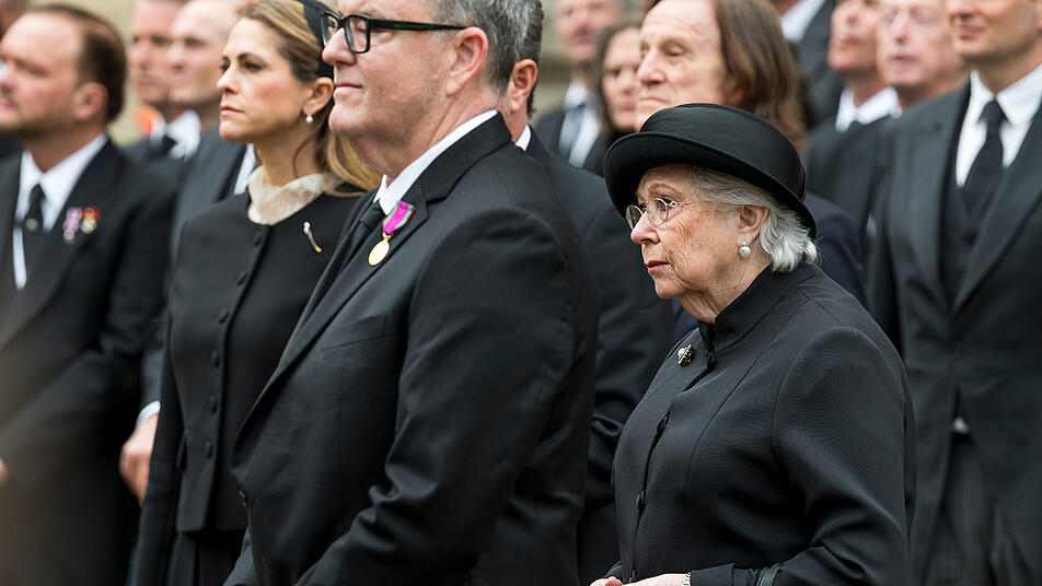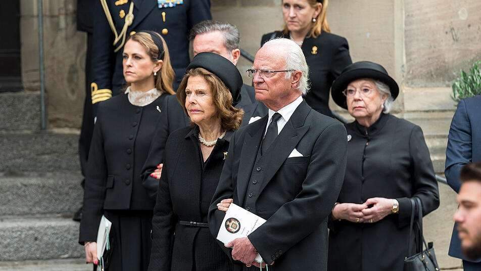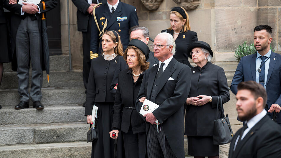 So wohnte unter anderem das schwedische Königspaar Carl Gustaf und Silvia dem vom früheren Vorsitzenden des Rats der Evangelischen Kirche in Deutschland (EKD), Heinrich Bedford-Strohm, geleiteten Trauergottesdienst bei. Bei leichtem Nieselregen betraten Carl Gustaf und Silvia, geschützt von dunklen Regenschirmen, die Kirche St. Moriz. Zudem waren auch Prinzessin Madeleine und ihr Mann Christopher O'Neill sowie Carl Gustafs Schwester Christina angereist.