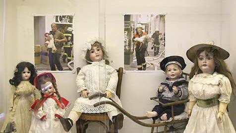 Das Großfeuer Pfingsten 2012 in der Herrngasse machte bundesweit Schlagzeilen. Auch das Puppenmuseum wurde in Mitleidenschaft gezogen - wie sehr, das erzählen die Puppen im Museum nun selbst. "Wartezimmer" lautet die Beschriftung in einer Vitrine, darunter säuberlich aufgereiht auf Stühlen sitzend die Puppen. Sie haben die leichteren Schäden davon getragen - "habe mir das Gesicht gestoßen, weil ich im dichten Rauch nichts gesehen habe", behauptet eine von ihnen in der Sprechblase über ihrem Kopf. Daneben befinden sich die schweren Fälle in der "Unfallstation". Eine große "Bebi"-Puppe liegt ganz schön mitgenommen in ihrem Bettchen: Ihr Hinterkopf ist nur noch ein großes Loch.