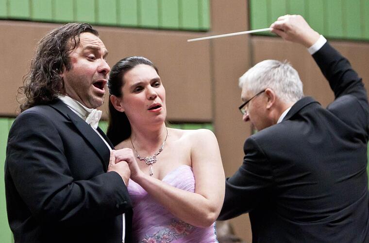 "Zwei Märchenaugen" Bestens harmonierend präsentiert sich an diesem Abend das Solistenduo. Die Sopranistin Andrea Chudak aus Berlin, die schon vor einem Jahr an gleicher Stelle das Publikum begeisterte, zieht die Zuhörer mit ihrer stets sicher geführten, jederzeit tragfähigen Sopranstimme in Bann. Vor allem aber sorgt sie dafür, dass bei diesem Operetten-Abend niemand ein Bühnenbild vermisst.
