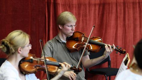 "Wir arbeiten basisdemokratisch", sagt Andreas Hilf, der Bratschist des Ensembles. Und wer das Philharmonia Ensemble bei der Probe erlebt, wird diese Beschreibung tatsächlich als zutreffend empfinden. Besonders dann, wenn die Musik sehr komplex ist, wenn sich die Musiker zwischen charakteristisch unterschiedlichen gestalterischen Ansätzen entscheiden müssen, ist die Arbeit ohne Dirigent manchmal durchaus zeitintensiv. Aber sie hat natürlich auch große Vorzüge. "Wir können einfach auch ganz unterschiedliche Dinge ausprobieren", sagt Hilf.