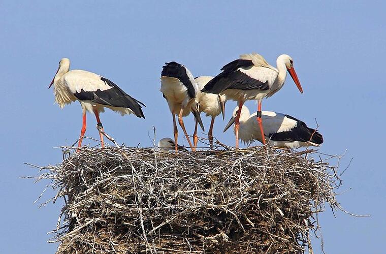 Seßlach Weil beide Alt-Störche unberingt sind, kann ihre Herkunft nicht geklärt werden. Vier Jungvögel sitzen im Horst, den ihr Vater schon mehrfach energisch gegen vorbeifliegende Störche verteidigte.