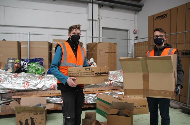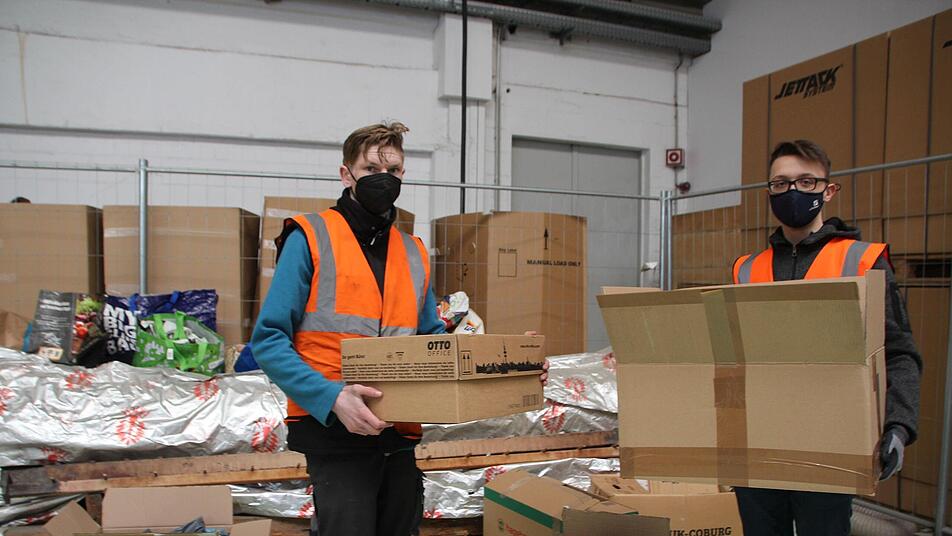 Mittwoch, kurz nach 15 Uhr, Friesendorfer Straße in Ebersdorf bei Coburg: Zum soundsovielten Mal an diesem Tag kommt ein Auto vorgefahren. Ein Mann steigt aus und reicht David Hoffmann drei prall gefüllte Tüten. "Toll, dass ihr das macht", sagt der Mann und ist im nächsten Moment auch schon wieder verschwunden. David Hoffmann bringt die Tüten derweil in eine der großen Hallen von Schumacher Packaging. Dort wird jetzt sortiert - und zwar nicht nur das, was der hilfsbereite Mann soeben vorbei gebracht hat, sondern das, was unfassbar viele Menschen bereits seit Montag vorbeigebracht haben.