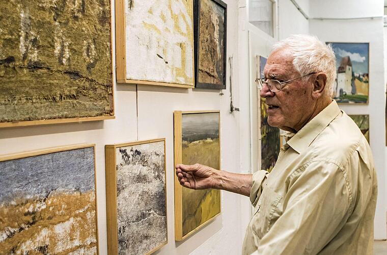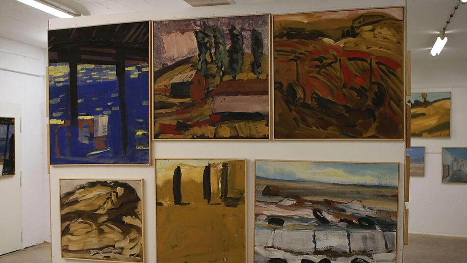 Reiter, der viele Jahrzehnte als Kunstpädagoge an Coburger Gymnasien gearbeitet hat, war als Künstler immer ein Wanderer. Reiter war viel unterwegs - im wörtlichen wie im übertragenen Sinn. Mit den Augen des Künstlers hat er Landschaften erkundet, hat sie künstlerisch verwandelt und gestaltet - auf Papier und Leinwand oder gerne auch auf aufgeschnittenen Säcken, die er oft als Malgrund verwendet. In seinem Lagerraum stapeln sich diese Säcke zu Tausenden - Säcke, die ihre eigenen Geschichten erzählen, noch bevor der Künstler sie in Rahmen als Malgrund aufgezogen hat.