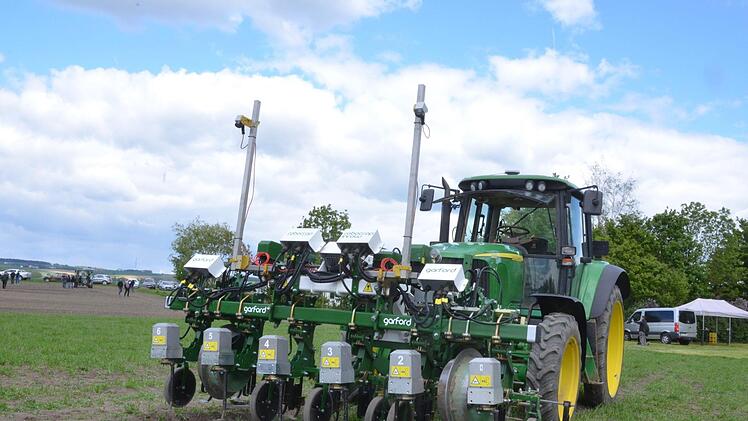 Der Schlepper brummt über einen Maisacker und zieht eine Hackmaschine durch die Pflanzenreihen. Gespannt folgen zig Landwirte dem Gespann. Mit kritischen Blicken nehmen sie die Arbeit unter die Lupe. Hat er Maispflanzen mit erwischt? Hat er nicht. Kameras achten darauf, wo Pflänzchen stehen und sorgen über eine digitale Steuerung dafür, dass die scharfen Werkzeuge ihnen ausweichen.