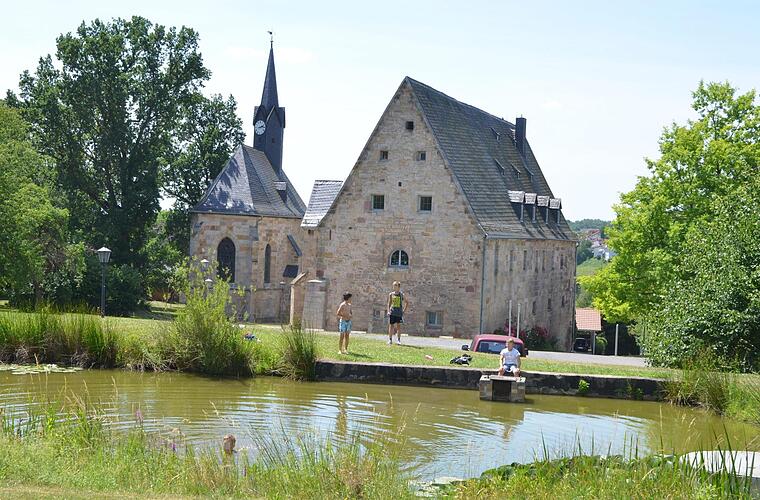 Der Löschteich vor dem Kloster Mönchröden wird nicht eingezäunt, damit Kinder dort weiter am Wasser spielen können.