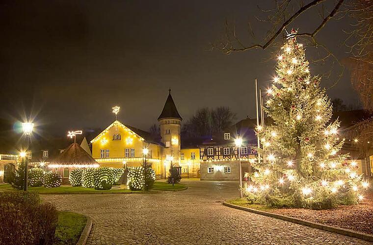 Im Sommer öffnet dort einer der schönsten Biergärten im Coburger Land. Im Advent aber schmückt der Bauhof, der in den Gebäuden untergebracht ist, sein Domizil wie ein übergroßes Wohnzimmer festlich aus. Die historische Kulisse im festlichen Lichterglanz bildet dann auch den Rahmen für einen der schönsten Weihnachtsmärkte weit und breit. Leider ist er nur an einem Wochenende geöffnet. Aber auch ohne Marktstände lohnt sich ein abendlicher Spaziergang zur festlich strahlenden Domäne.