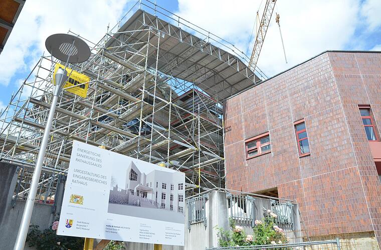Auch wenn der Umbau eigentlich dem Rathaussaal und dem Eingangsbereich gilt, strahlt die Planung auf das gesamte Gebäude aus. "Wir müssen das ganze Rathaus anschauen, was Brandschutz, Fluchtwege und so weiter angeht", erklärt Marco Steiner. Zudem wird ja der alte Fahrstuhl, der im Hauptgebäude liegt, zurückgebaut. Und da einmal alles im Fluss ist, wird auch gleich die gesamte Telefonanlage erneuert, was eigentlich erst für später geplant gewesen wäre.