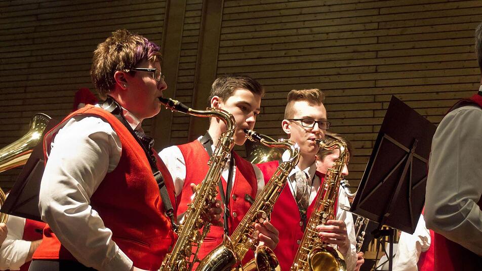 Rot ist die Farbe dieses Abends. Rot sind die Westen des Jugendorchesters Rödental. Rot sind die Westen des Musikvereins Rödental. Rot sind die Shirts der vielen Helfer hinter den Kulissen, die das Publikum in der zum Konzertsaal verwandelten Franz-Goebel-Halle kulinarisch rundum versorgen. Bunte vokale Klangfarben bringt dann im Finale noch der Coburger Chor "Unerhört" ins Programm.