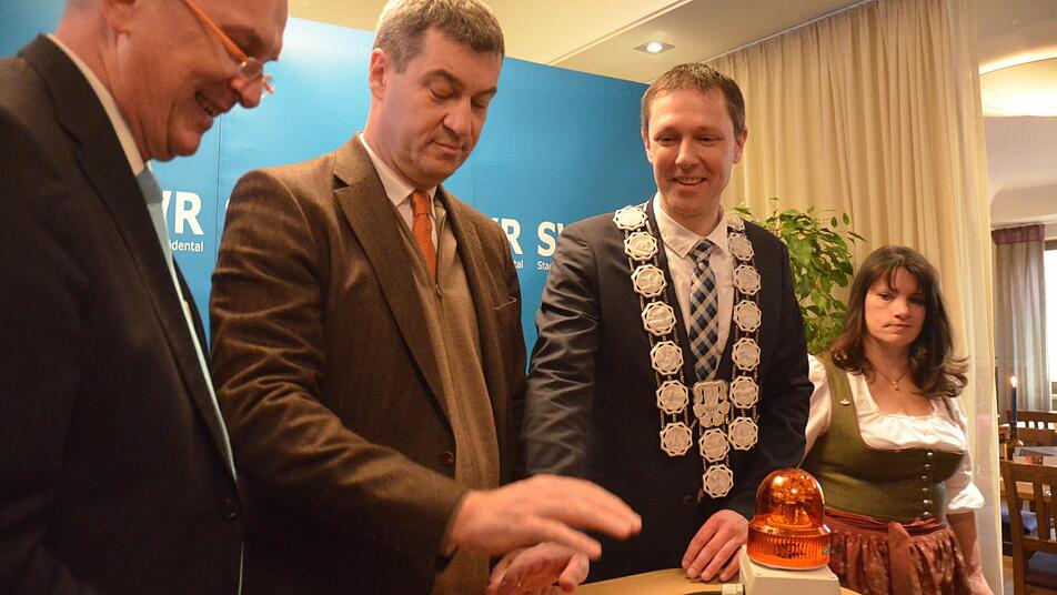 Wer schnell ist, bekommt nicht nur Fördermittel, sondern auch Besuch vom Minister. Als eine der ersten Kommunen überhaupt hatte Rödental seinen Förderbescheid für den Ausbau des schnellen Internets in der Tasche. Schneller als alle anderen hat die Stadt nun auch schon den ersten Bauabschnitt abgeschlossen. Daher kam am Freitag Finanz- und Heimatminister Markus Söder (CSU) persönlich in den Gasthof Grosch, um den symbolischen Startknopf zu drücken.