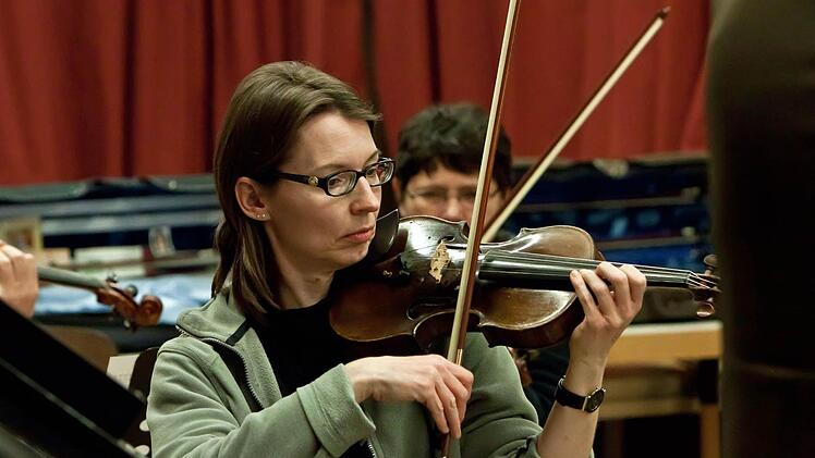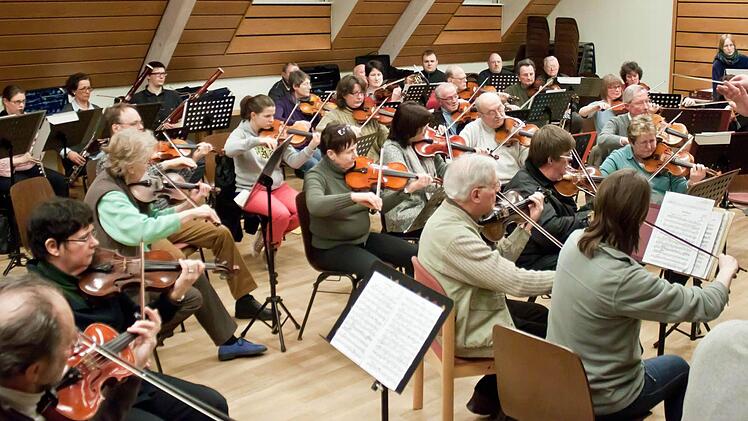 So bereitet sich das Orchester der Musikfreunde Neustadt auf sein Konzert mit dem Pianisten Hans-Dieter Bauer vor.