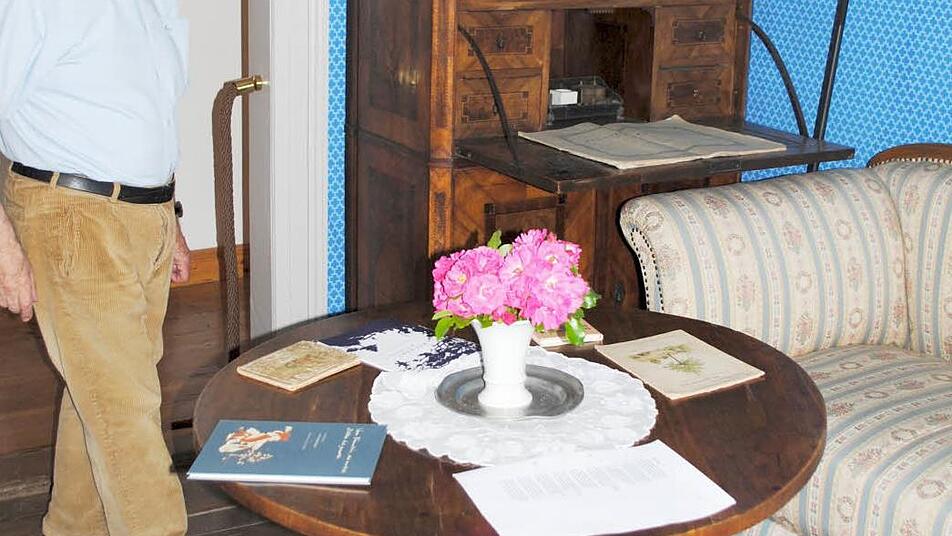 Im original erhaltenen "Dichterzimmer" mit der blauen Tapete wiederum sind wir Standardkleinen kaum in der Lage, auf die für Rückert gefertigten Möbel, auf Stehpult und Sekretär zu blicken. Dort liegen sogar Original-Handschriften, unter Glas. Im Regal steht Rückerts Handbibliothek, die man aber besser nicht mehr anrührt. "Wir suchen nach einer Möglichkeit, sie zu erhalten", spricht Klaus Rückert eines der konservatorischen Probleme an. "Aber das ist sehr teuer."