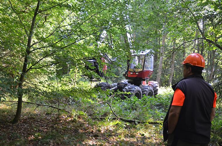 Vor den Gefahren für Waldbesucher können die Fachleute nicht genug warnen. Das gilt vor allem für den Maschineneinsatz. "Der Maschinenführer auf dem Harvester muss sehr konzentriert arbeiten und sein Sichtfeld ist im Bewuchs gering, daher kann er einen Menschen, der sich nähert, leicht übersehen", erklärt Stefan Wittenberg.