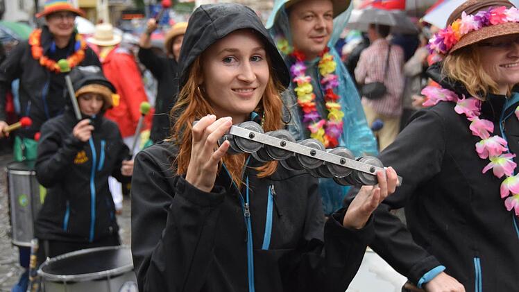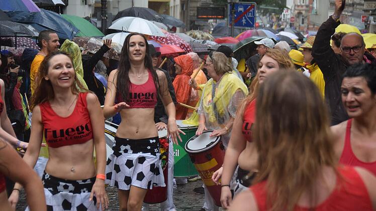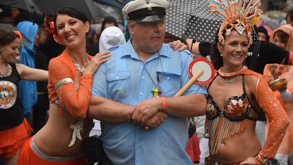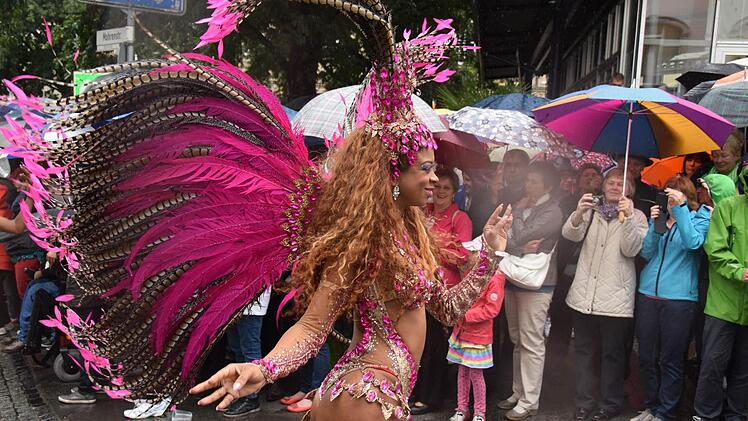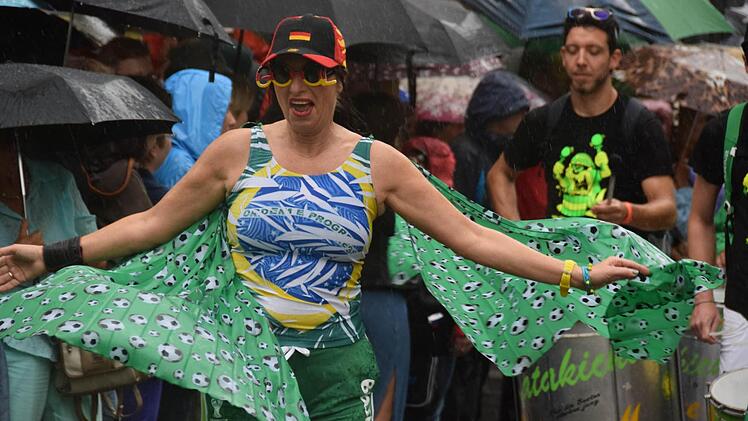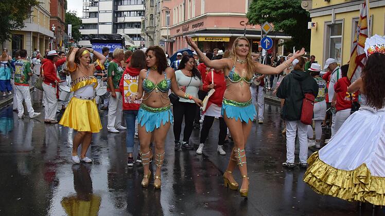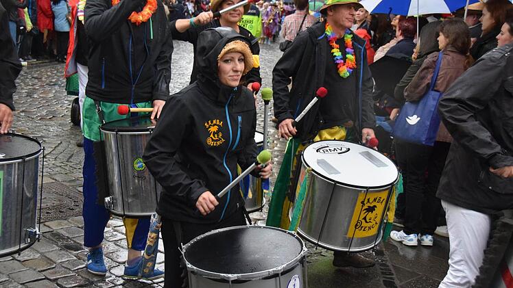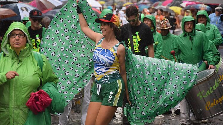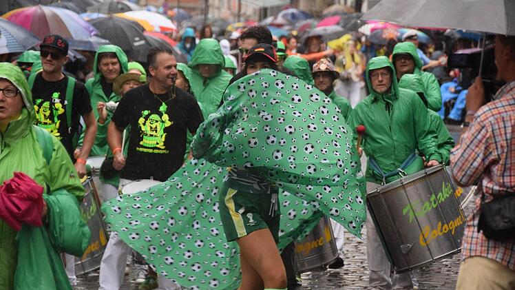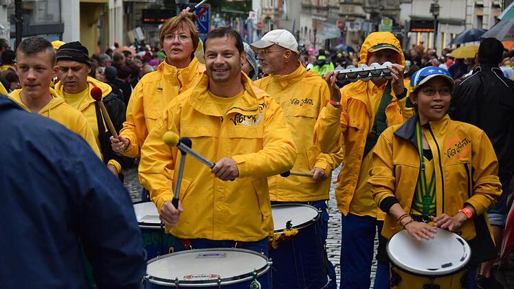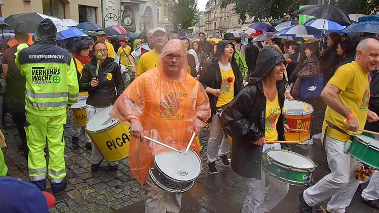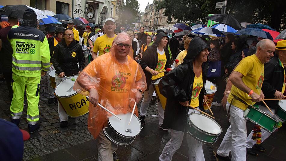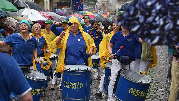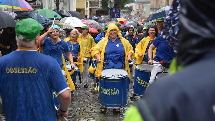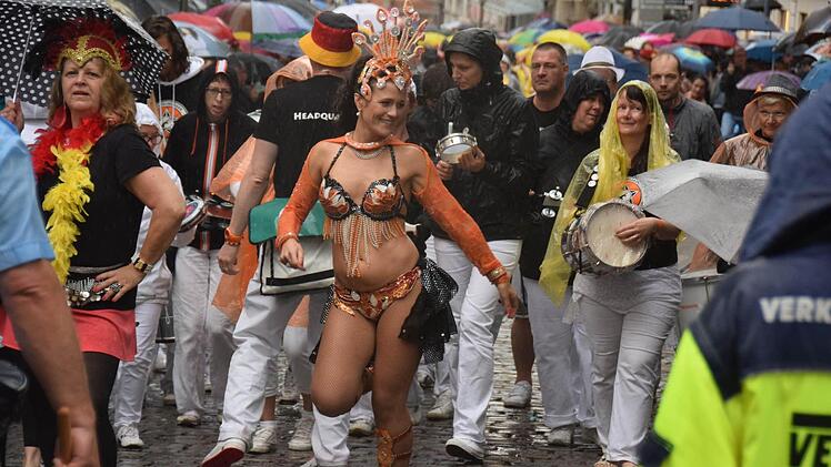 Echte Samba-Fans lassen sich ihre Feierlaune von ein wenig Dauerregen nicht so einfach verderben. Beim traditionellen Samba-Umzug am Sonntag durch die Coburger Innenstadt bestimmten Regenschirme und diverse wasserfest Umhänge das Bild. Gute Stimmung herrschte trotzdem beim Publikum wie bei den Mitwirkenden.