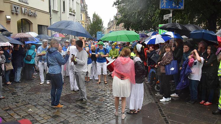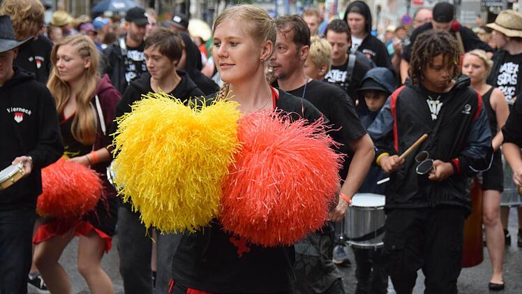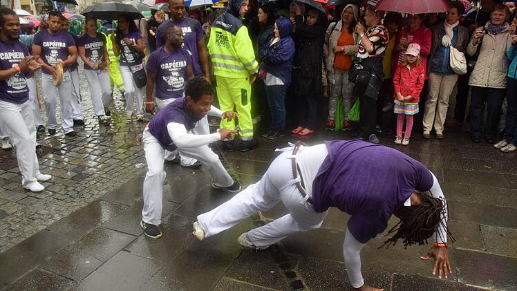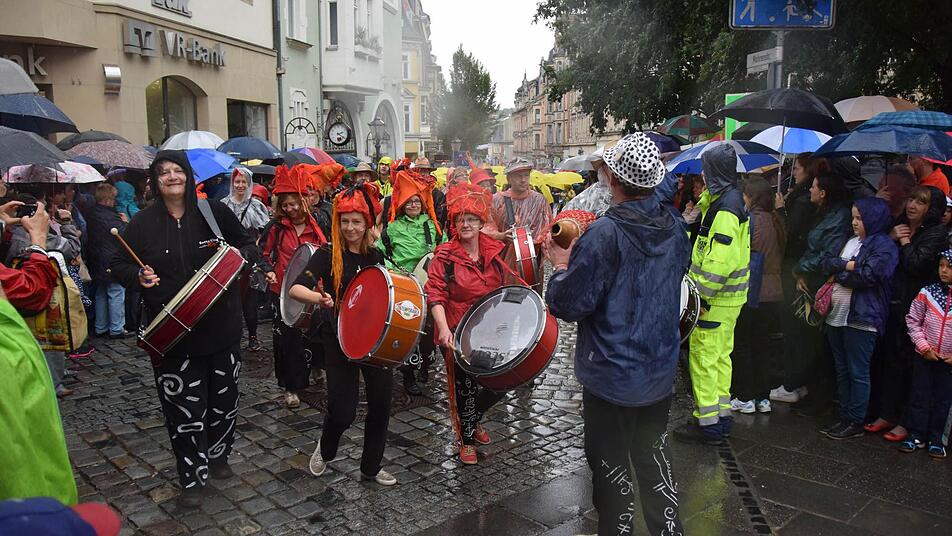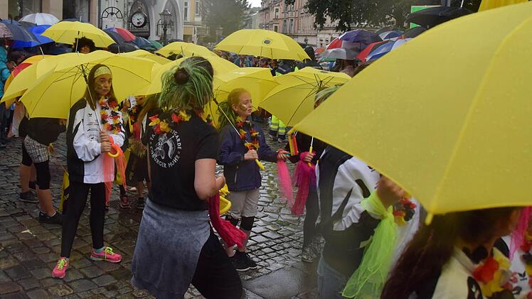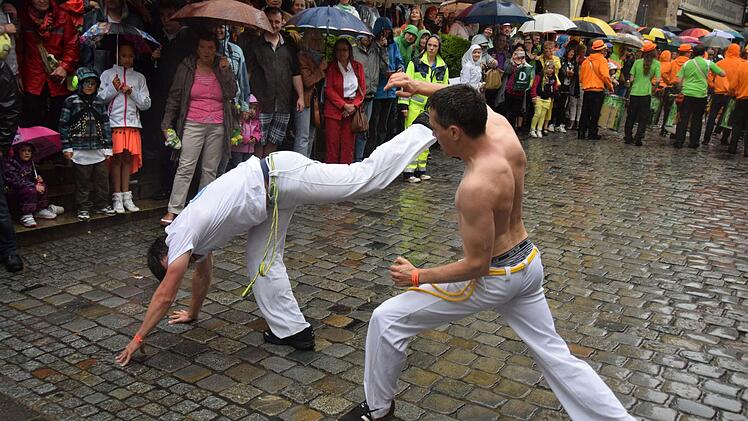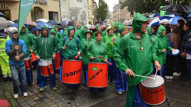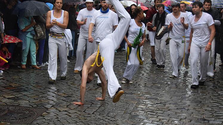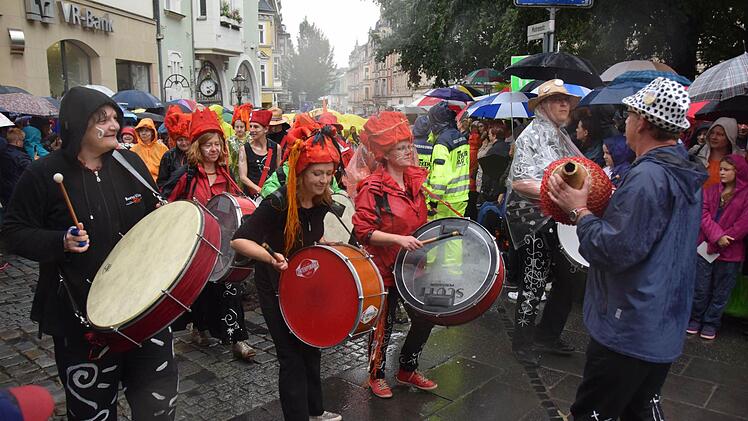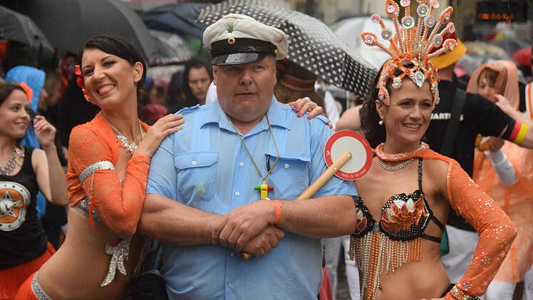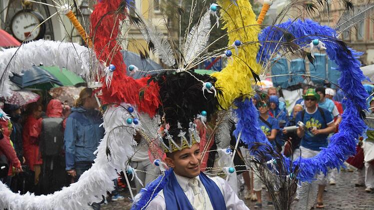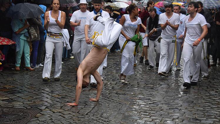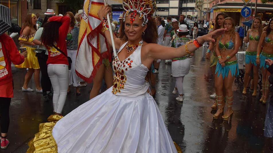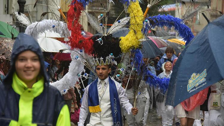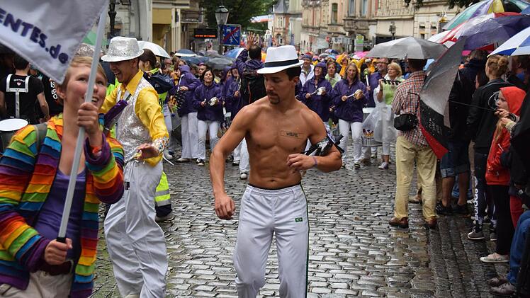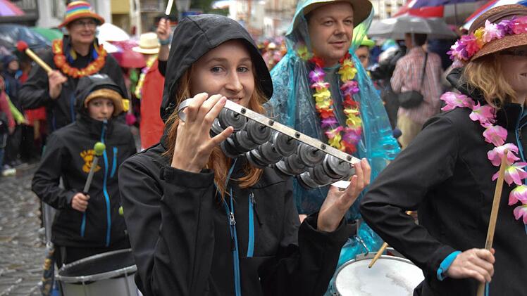 Echte Samba-Fans lassen sich ihre Feierlaune von ein wenig Dauerregen nicht so einfach verderben. Beim traditionellen Samba-Umzug am Sonntag durch die Coburger Innenstadt bestimmten Regenschirme und diverse wasserfest Umhänge das Bild. Gute Stimmung herrschte trotzdem beim Publikum wie bei den Mitwirkenden.