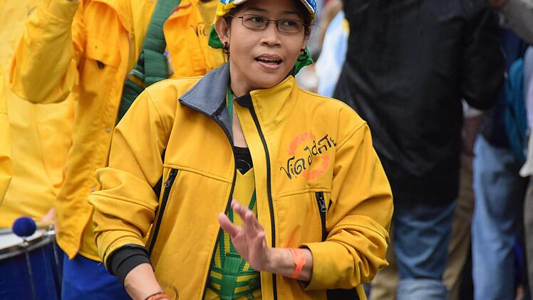 Und gerade angesichts des grauen Himmels waren die zahlreichen Zaungäste froh über die bunten Kostüme der Umzugsteilnehmer. Es wurde getrommelt und getanzt und natürlich eifrig posiert für die zahllosen Fotografen.