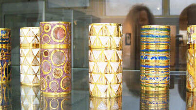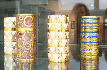 Goldener Schmuck, kostbares liturgisches Gerät, edle Gefäße. Ragna Sperschneiders Werke sind von moderner Gestaltung, beschwören aber eine fast mystische, archaische Aura herauf, was keineswegs nur von den edlen kirchlichen Gerätschaften, den silbernen Abendmalskelchen und Hostiendosen in strahlender, klarer Gestaltung ausgeht. Es ist schon das Material, dem die 2003 gestorbene Hamburger Künstlerin ihre Formen und Farben, ihre Kreise und Linien gegeben hat, das die Assoziation an reiche Schatzkammern nährt. Vergoldetes Kupfer, mit Email in farbige Kosmen geführt, in kraftvollen abstrakten Mustern, gleichzeitig aber ohne Scheu vor konkreten Bezügen, wie in den Bechern mit Stadtmotiven oder mit Segelschiffen.