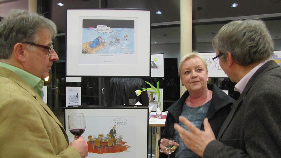 "Manchmal bleibt einem beim Anblick der Karikaturen das Lachen im Halse stecken", bekannte Michael Kleiner vom Referat Weltkirche im Erzbischöflichen Ordinariat Bamberg in seiner Rede zur Eröffnung der Ausstellung. "Aber auch angesichts von Leid und Elend muss Karikatur erlaubt sein."