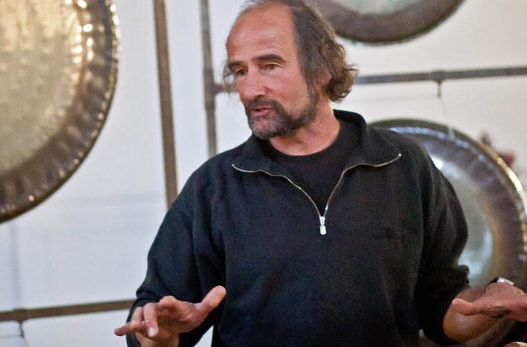 Irritierend und faszinierend Mit Schlägeln entlockt Bürck Steinen, Gongs und Wasser unerhörte Klänge. Wenn Bürck mit einem großen weißen Schlägel seine Gongs in Schwingung versetzt, entstehen schwer zu beschreibende Klänge. Wer dabei die Augen schließt, fragt sich irritiert: Sind das nicht vielleicht doch elektronische Klänge? Martin Bürck - schwarze Hose, schwarzes Hemd, schwarzer Vollbart - wirkt ein wenig wie ein Klangschamane, wenn er seinen Gongs regelrechte Klangfluten entlockt. Ganz nebenbei wird sein Auftritt zum praktischen Seminar in Sachen Akustik.