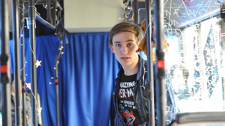 Theater-Tipp Der Junge im Bus Schauspiel von Suzanne van Lohuizen für "Menschen ab zehn Jahren". Diese mobile Produktion kann gebucht werden über das "Junge Landestheater" (Telefon: 0 95 61/ 89 89 97 oder per Mail unter yvonne.schwartz@landestheater-coburg.de)