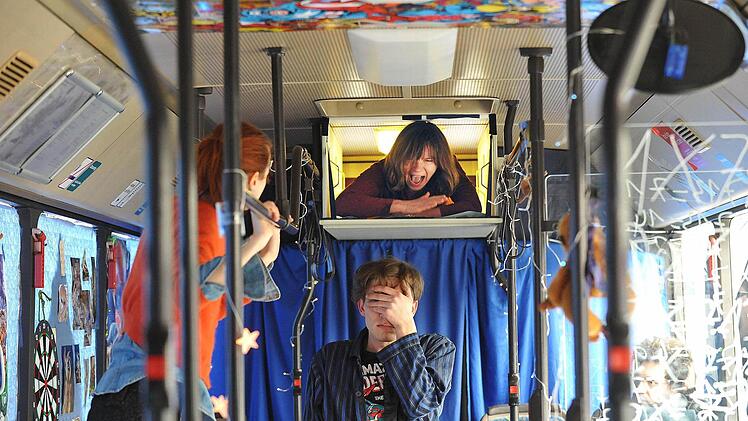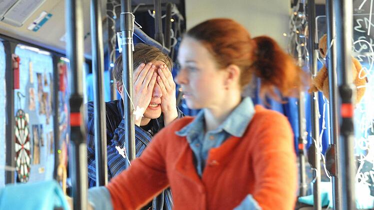 Alles eine Frage der Perspektive Verrückt oder normal - manchmal ist das einfach nur eine Frage der Perspektive. Coburgs Theaterpädagogin Yvonne Schwartz hat dieses Stück von Suzanne van Lohuizen am passenden Ort inszeniert - in einem ausrangierten SÜC-Bus. Als Regisseurin hütet sie sich klugerweise davor, die Aufführung zum theatralischen Unterricht in Sachen Krankheit zu machen. Vor- und Nachbereitung mit den Schülern zählt zum Programm bei dieser mobilen Produktion.