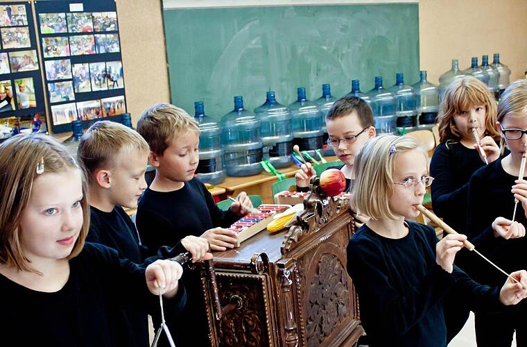 "Wir wirbeln mit diesem Vorhaben natürlich den Schulalltag der beiden Klassen gehörig durcheinander", sagt Schmidt und ist dennoch überzeugt vom pädagogischen Mehrwert des Vorhabens: "Was die Kinder in diesen zwei Wochen lernen, ist genauso wichtig wie zum Beispiel Mathematik." Schmidt und Schrader wollen natürlich mit den 47 Kindern der Emil-Fischer-Grundschule eine überzeugende Aufführung auf die Bühne des Landestheaters bringen. Noch wichtiger ist Schrader dieser Aspekt: "Die Kinder lernen, aufeinander zu hören und miteinander Musik zu machen."