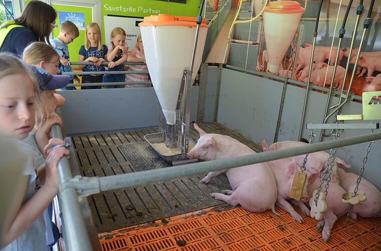 "Wir sind zwar hier im ländlichen Raum, aber in einen Schweinestall kommt man ja nur sehr selten rein", sagt BBV-Kreisbäuerin Heidi Bauersachs, die neben anderen Fachleuten für die Fragen der Kinder ein offenes Ohr hatte. Moderne Schweineställe unterliegen sehr strengen Hygienevorschriften. Ganze Schulklassen würde wohl kein Landwirt dort als Besucher hinein lassen.