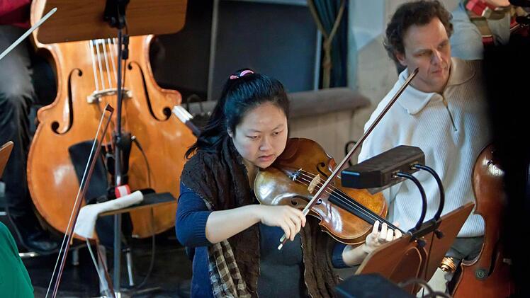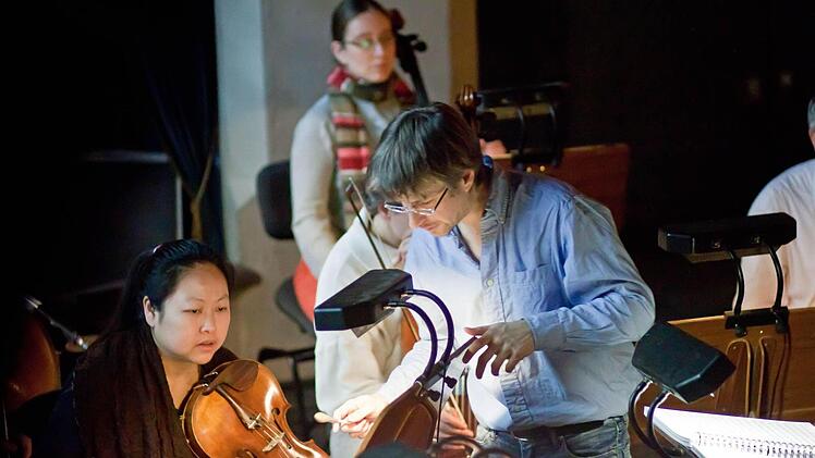 "Schauen Sie nicht in die Noten, sondern auf die Mikrofone", fordert Fister. Denn die Aufnahme soll schließlich möglichst lebendig, möglichst intensiv im Ausdruck klingen.