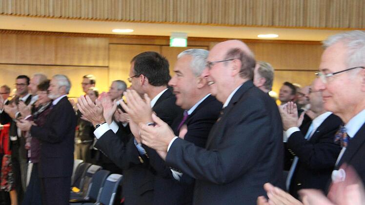 Zum Abschluss übernahm das Landestheater mit Szenen aus "King Arthur" die Bühne. Das sanierungsbedürftige Landestheater fällt auch in Spaenles Zuständigkeitsbereich. Der applaudierte am Ende stehend mit allen anderen Gästen.