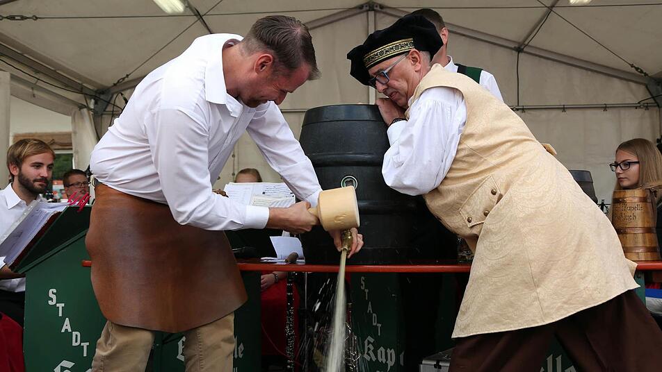 Neben Altbewährtem erwarteten einige Neuerungen die Besucher. So hatte Bürgermeister Martin Mittag erstmals bereits am Samstagvormittag das Fest eröffnet. Gestern erklomm der Rathauschef erneut die Bühne am Maximiliansplatz: Beim Bieranstich löste der Wirtssohn Mittag sein Versprechen ein und erteilte Bad Rodachs Bürgermeister Tobias Ehrlicher eine Lehrstunde. Anlass war dessen verunglückte Fassöffnung beim Rodacher Oktoberfest 2015.