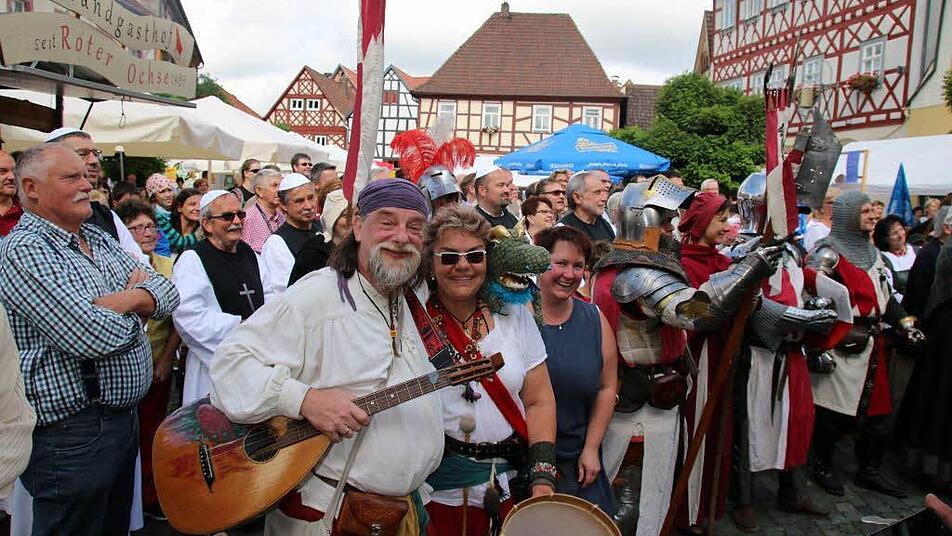 "So einen Festzug habe ich noch nicht erlebt!" Wolfgang Pfister, Vorsitzender des Seßlacher Tourismusvereins und Zweiter Bürgermeister, zeigte sich am gestrigen Sonntag überwältigt: Mit über 100 Teilnehmern war der Umzug durch die historische Altstadt Seßlachs zu Ende gegangen. "Woanders bauen sie Kulissen für Mittelalterfeste auf - hier haben wir das nicht nötig", fügte Pfister hinzu.