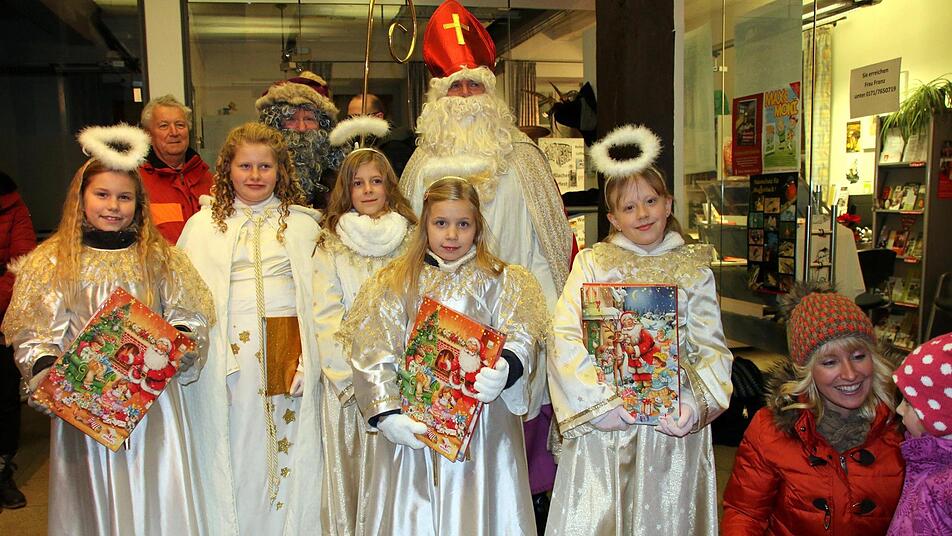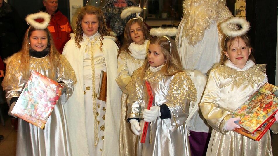 Dass sie in Seßlach viele Menschen erwarten würden, kannte Mia-Sophie schon, erfreut sich der idyllische Adventsmarkt innerhalb des Altstadt-Mauerrings doch seit Jahren großer Beliebtheit. Gleich vier Engelchen begleiteten das junge Christkind in diesem Jahr auf die Bühne. Neben den bereits erfahrenen Himmelbotinnen Johanna Hartan und Victoria Vollert präsentierten sich erstmals die Schwestern Lilly und Leni Hofmann den Besuchern. "Ich finde es schön, dass die Kleinen noch ans Christkind, die Engelchen und den Weihnachtsmann glauben", verriet Mia-Sophie. Nachdem die Elfjährige souverän ihr Gedicht vorgetragen hatte, gehörte die Aufmerksamkeit insbesondere der kleinen Zuschauer ganz dem Nikolaus (Olaf Turek) und seinem Knecht Ruprecht (Kurt Knauer).