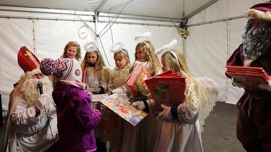 Jungen und Mädchen standen Schlange, um dem Heiligen Mann ein Gedicht oder Lied darzubringen und dafür von Ruprecht einen Adventskalender zu erhalten. Dem Wunsch eines Kindes er möge doch seine Stiefel ausziehen, wäre der Nikolaus ja gern nachgekommen, doch selbst im Sitzen brachte er die Fußbekleidung partout nicht runter. "Für Kinder ist Weihnachten noch das, was es auch für uns Ältere sein sollte: eine ganz besondere besinnliche Zeit", hatte zuvor Bürgermeister Martin Mittag (CSU) festgestellt, als er den Adventsmarkt offiziell eröffnete. Er empfahl allen "einmal runterzufahren" und sich Zeit zu nehmen.