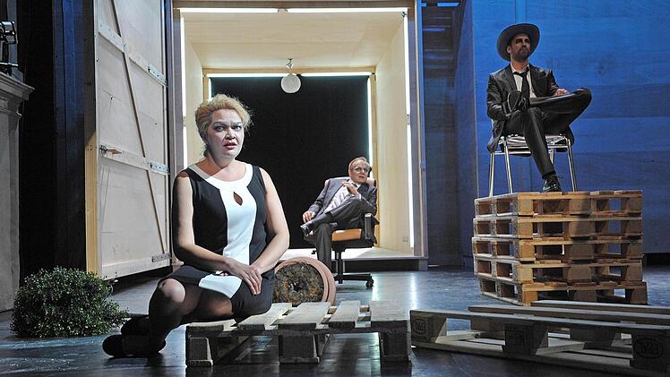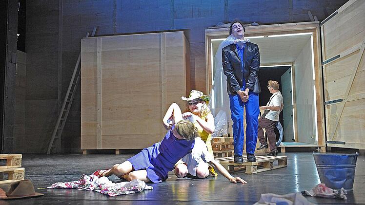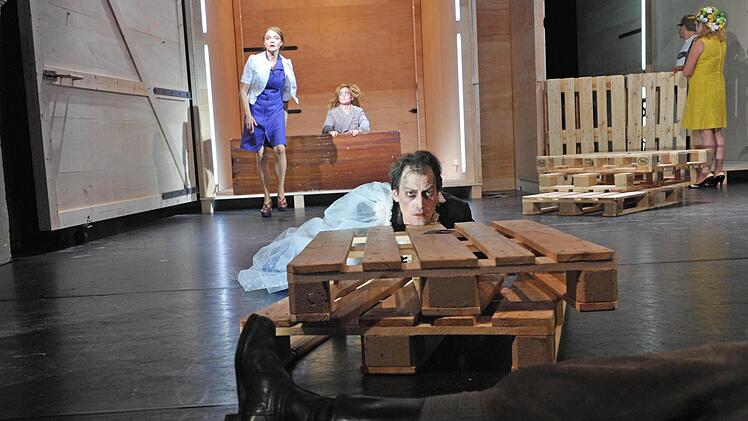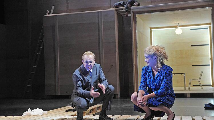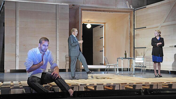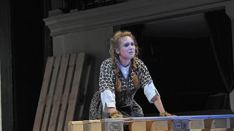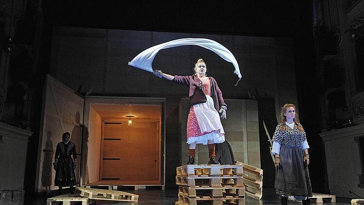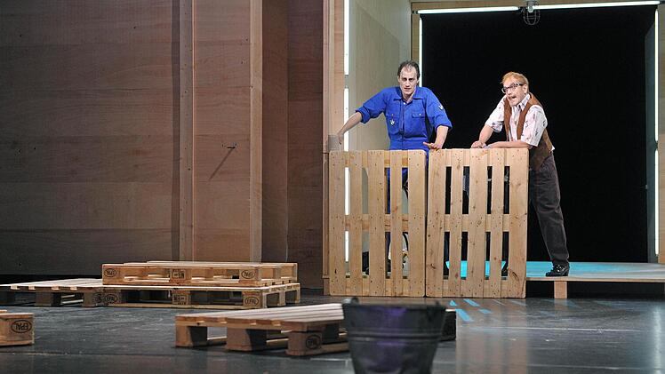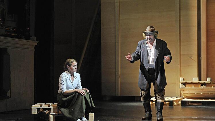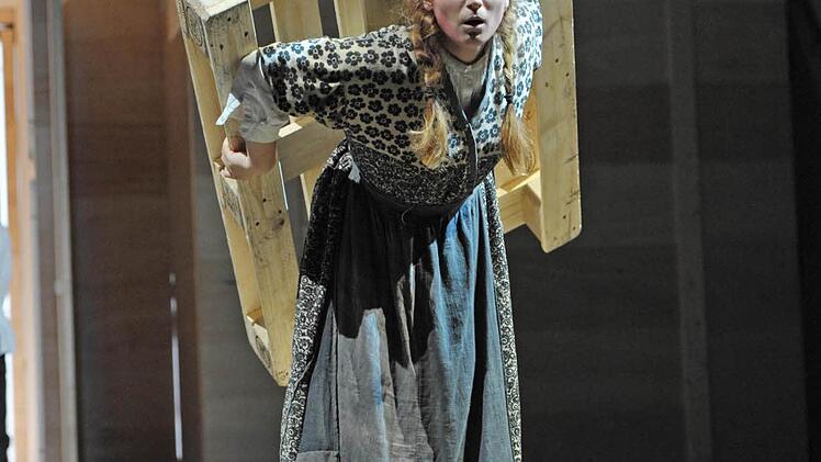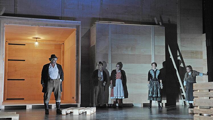 Coburg — Die Holzpaletten krachen auf die Bühne des Landestheaters. Wieder und wieder, immerzu. Sie stehen für die große Mühe, die endlose Arbeit, genauso aber für die inneren Mühen, die Seelenqualen über Generationen hinweg. Alle schleppen Holzpaletten vor der übermächtigen Holzwand mit den riesigen Toren (Bühne Henrike Engel), vom Knecht über die schwangere Flüchtlingsfrau bis zur kranken Bäuerin.