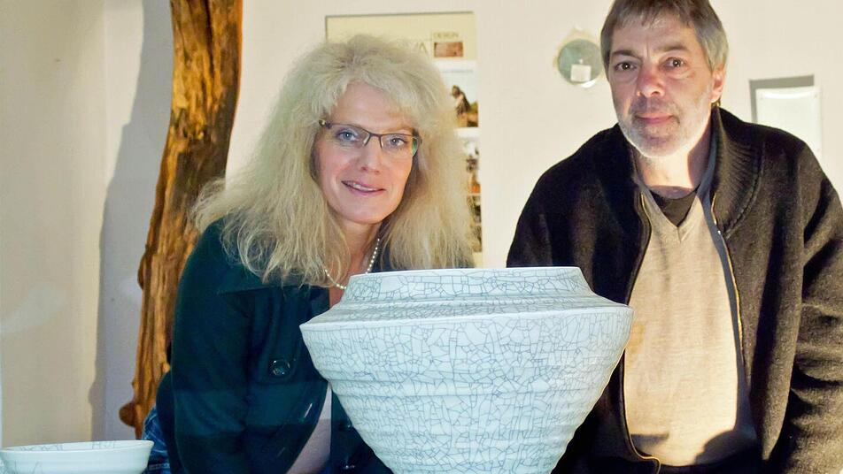 "Gestrickte" Objekte Das in der Region bestens bekannte Keramiker-Ehepaar Sigrun Wassermann und Klaus Dorrmann zeigt hier einen Überblick über die Arbeiten der letzten rund zwei Jahre. Wer das Schaffen von Wassermann und Dorrmann aufmerksam verfolgt, wird bei den präsentierten Werken problemlos die jeweilige künstlerische Handschrift erkennen. Von Sigrun Dorrmann stammen "gestrickte" Objekte, die sie Schicht für Schicht aus fingerdicken Tonfäden formt.