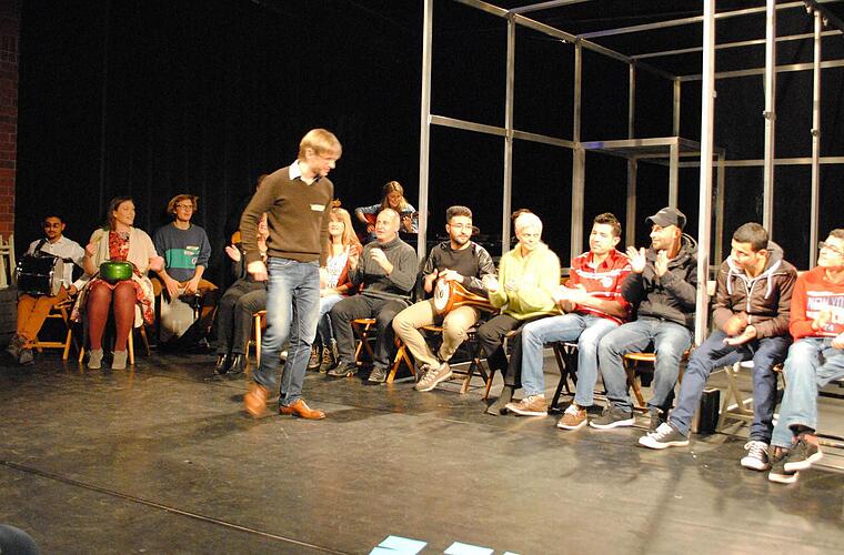 Im Kultur-Netzwerk "Refugium Theater" engagiert sich auch Coburg. Jetzt fand der zweite dieser offenen Abende mit viel Gesang und Gelächter statt. Theaterpädagogin Luca Pauer vereinte Flüchtlinge und Coburger Bürger musikalisch bei einer lustigen Stunde.