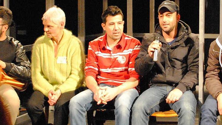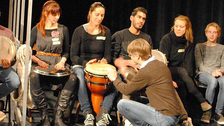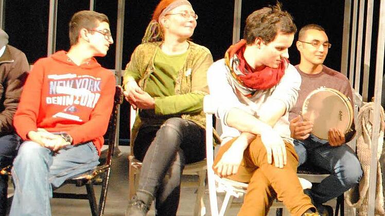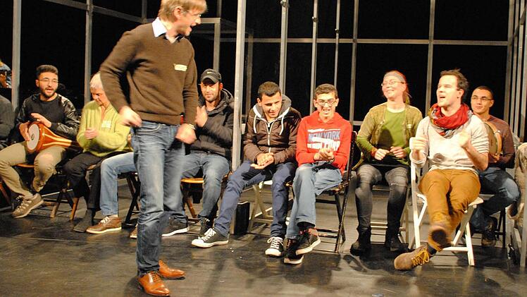 Glaube keiner, dass das einfach sei. Doch am Ende dieser Stunde der herausfordernden Begegnung in der Reithalle gucken die meisten, die Flüchtlinge wie die Coburger, wenigstens mal vorsichtig über die Mauer ihres Misstrauens, ihrer Verunsicherung. Sie haben am Freitagabend miteinander getrommelt und gesungen, zuletzt ein bisschen getanzt, im "Freistaat Coburg", dem zum Mitmachen offenen Veranstaltungsformat des Landestheaters.