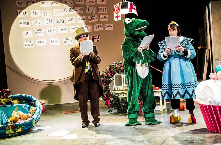 Die Spielregeln dieser Theaterserie sind im Grunde ganz einfach. Der Regisseur liefert den Text, die Darsteller improvisieren über diese Textvorlage und müssen dabei immer wieder spontan Regie-Anweisungen umsetzen, die auf in die Höhe gehaltenen Tafeln stehen. Für die Darsteller wird der temporeiche Abend zur Tour de Force - und für das Publikum in der ausverkauften Reithalle zum anarchischen Vergnügen. Eva Marianne Berger, Alexandra Weis und Thomas Kaschel liefern sich auf offener Bühne bedingungslos dem Diktat der Regie aus und unterlaufen doch mit ihrem rückhaltlosen Spiel immer wieder die Vorgaben.