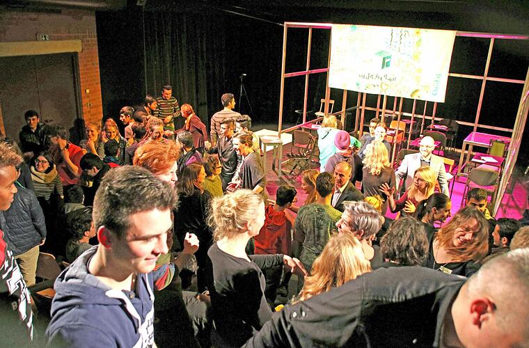 Denn mit ihrer Vision einer gerechten Welt trifft sie den Nerv ihrer Zuhörer, auch wenn viele von ihnen auf die Übersetzung zum Beispiel ins Arabische warten müssen, um wirklich zu verstehen, wovon die Rede ist. Auch der dritte "Freistaat"-Abend dieser Saison steht unter dem Motto "Refugium Theater" und erprobt die Möglichkeiten, das Medium des Spiels als Mittel Verständigung mit jenen Menschen zu erproben, die in den letzten Monaten als Flüchtlinge nach Deutschland gekommen sind.