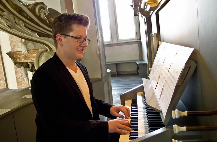 Liegt dieser Andrang an dem Umstand, dass die Reihe damit zu Ende ging und im nächsten Jahr in der dann gründlich renovierten Morizkirche weitergeführt wird? Oder liegt es daran, dass mit Joel Dicker ein ehemaliger Albertiner an der Orgel angekündigt ist, der in der Region durch die Mitwirkung an zahlreichen Konzerten bereits bestens bekannt ist? Dicker studiert inzwischen Schulmusik in Würzburg mit Hauptfach Orgel und hat zum Finale der "Marktzeit-Musiken" ein Programm zusammen gestellt, bei dem Musik und Raum eine wunderbare Symbiose eingehen.