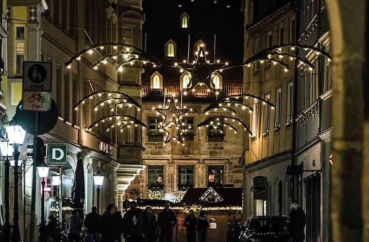 Deutlich stimmungsvoller als die Spit präsentiert sich dagegen trotz ihrer Breite die Mohrenstraße. Auch die Webergasse punktet in Sachen Adventsbeleuchtung - nicht zuletzt mit ihrem einladenden großen Schriftzug. Herrngasse und Judengasse rangieren ebenso im Mittelfeld wie Ketschengasse und Rosengasse. Besonders prächtig herausgeputzt dagegen mit leuchtenden roten Kerzen zeigt sich derweil die Mauer, die mit der Schließung von Matzer & Worsch deutlich an Anziehungskraft für zahlungswillige Kunden eingebüßt hat.