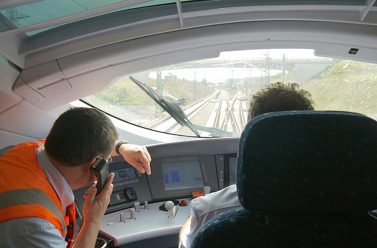 Wenn er nicht gerade die Anfragen der für die Testfahrt ausgewählten Medienvertreter beantworten muss, nutzt Olaf Drescher die Gelegenheit zum Blick aus dem Fenster. "So an die zehn Mal", sagt der Projektleiter für den neuen Hochgeschwindigkeitsabschnitt zwischen Ebensfeld und Erfurt, "bin ich hier bestimmt schon gefahren". Ein bisschen Stolz schwingt mit bei diesem Satz.